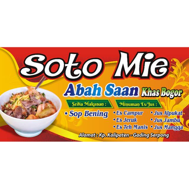 2 lembar daun jeruk. Kami berharap semoga ulasan spanduk soto mie bogor dapat memberikan gambaran secara utuh kepada Anda mengenai spanduk soto mie bogor serta aneka peluang bisnis dan investasi lainnya saat ini. Berikut ini contoh desain untuk spanduk banner usaha bakso soto dan mie ayam dengan corak yang menarik.