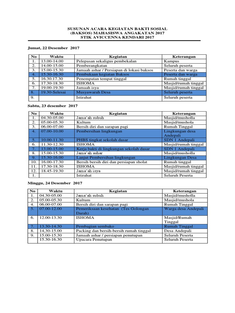 Susunan Acara Dan Kegiatan Baksos Pdf